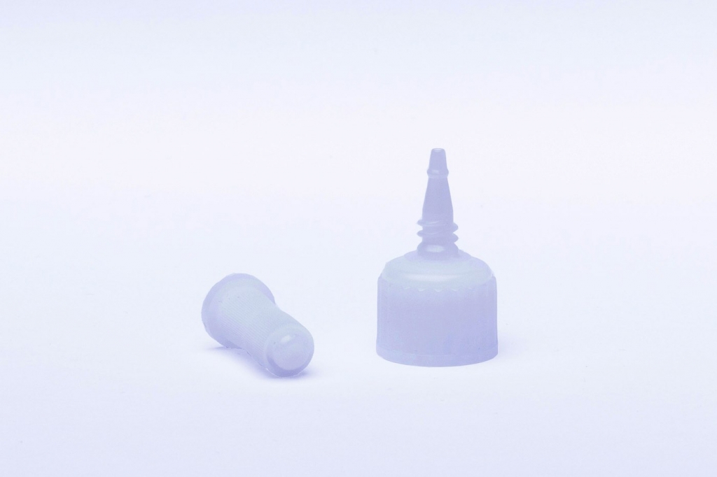 Tryska se naroubuje přímo na závit lahvičky. Je ji otevřená a připravená k pouití. Plastový hrot uvnitř uzávěru utěsní trysku a brání vytékání lepidla. V horní části trysky je malý krouek. Tento slouí k případnému upevnění mikropipety.